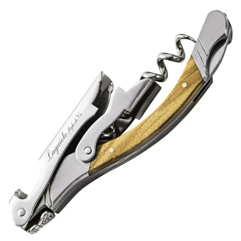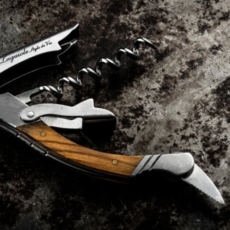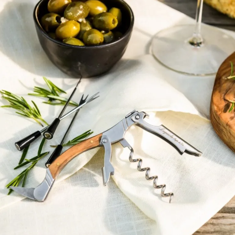 Denne elegante korketrekkeren fra Laguiole er en del av Luxury Line og er utstyrt med et håndtak i oliventre og et solid blad i herdet stål. Et slitesterkt og funksjonelt redskap som gjør det enkelt å åpne vinflasker, samtidig som det gir et sofistikert uttrykk.