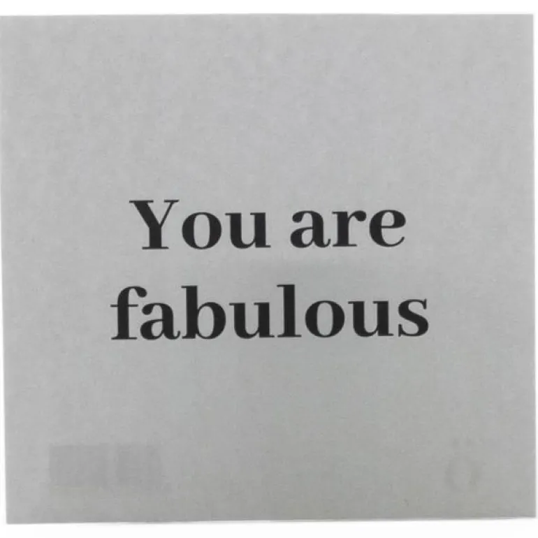 Et enkelt, beige kort med teksten You are fabulous skrevet i svart. Kortets bakside er hvit, uten tekst.