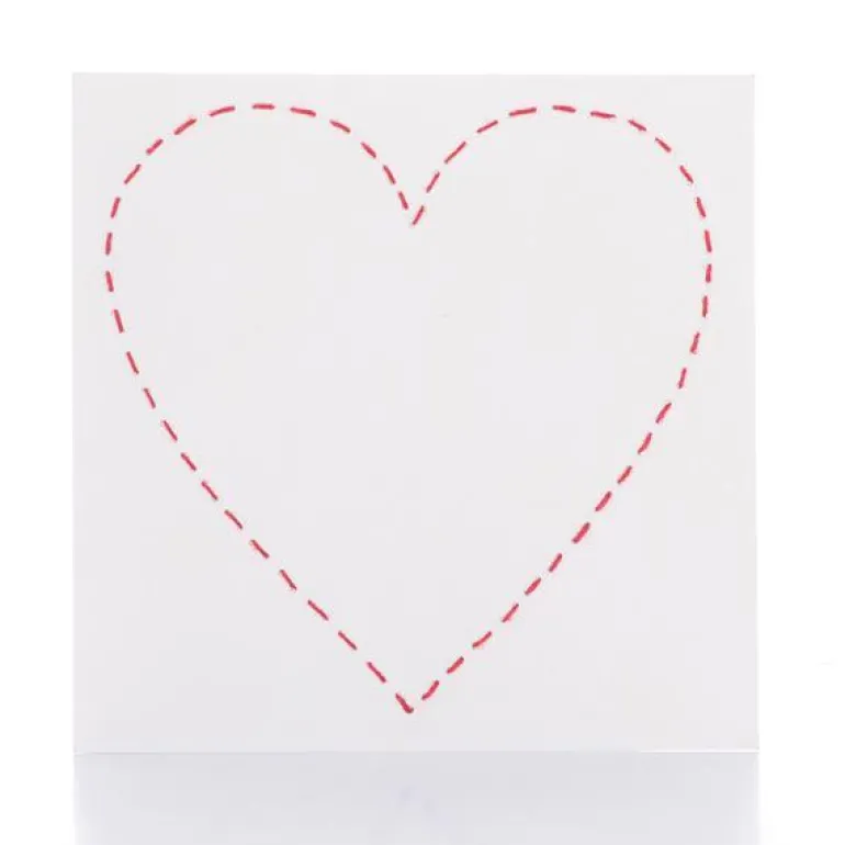 Produktet måler 13x13cm og er laget av hvitt papir som er håndbrodert med bomullstråd. Hvert kort er signert på baksiden av den enkelte produsent. Konvolutt medfølger.