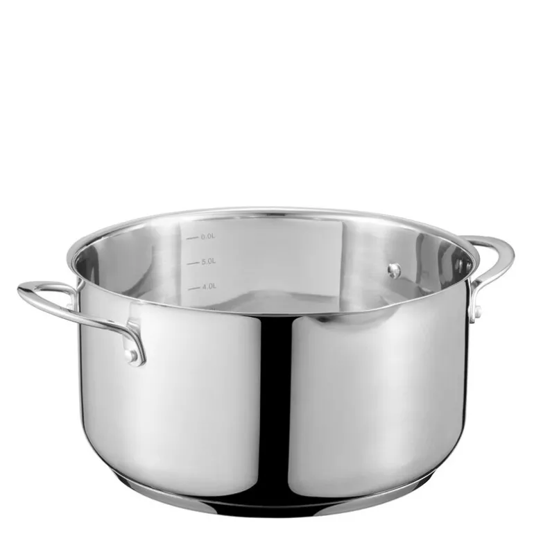 Den trelags konstruksjonen med aluminiumskjerne sørger for jevn varmefordeling, mens yttersjiktet i rustfritt stål gir solid holdbarhet. Glasslokket gjør det enkelt å følge med på matlagingen uten å slippe ut varme og fuktighet. Ergonomiske håndtak gir et godt og sikkert grep – også når gryten er full.