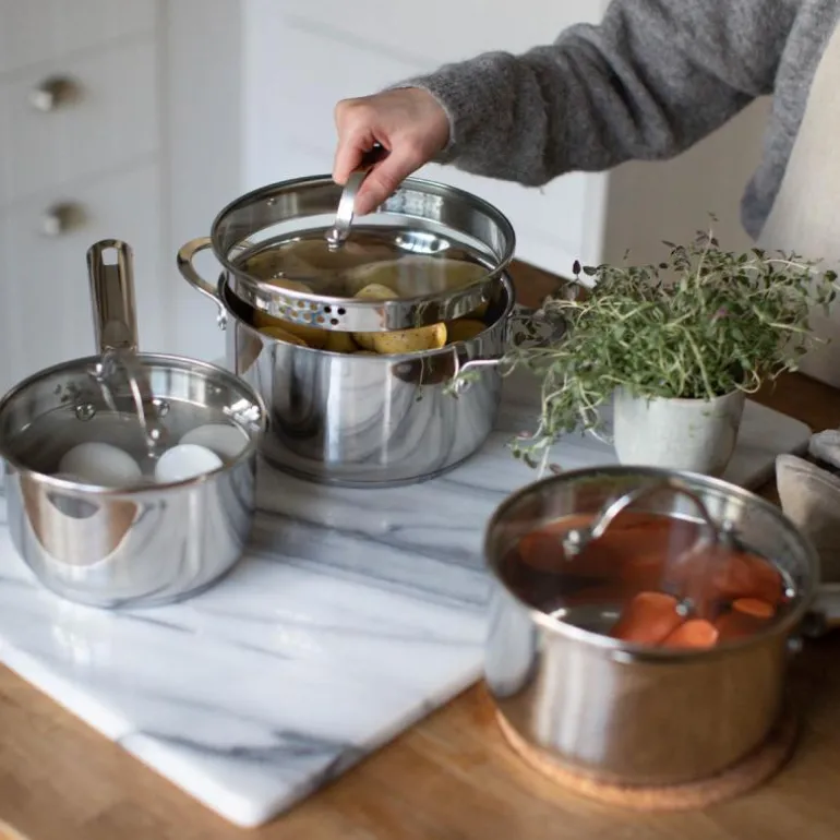 Kosmo Grytesett i 3 deler hjelper deg med å lykkes med alt fra kokte poteter til sauser. De vakkert designede grytene kommer i tre forskjellige størrelser. Grytene er på 1,5, 2 og 3 liter