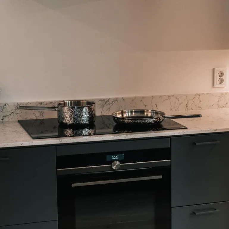 Settet inkluderer glasslokk til både kasserolle og gryte, noe som gir full kontroll over matlagingen. Alle delene har en aluminiumskjerne, som sikrer jevn og rask varmefordeling. Settet er kompatibelt med alle typer kokeplater, inkludert induksjon, og tåler ovnstemperaturer opp til 300°C. For ekstra beskyttelse i ovnen anbefales det å bruke det tilpassede håndtakstrekket Ulla fra Vargen & Thor, da håndtakene kan bli varme.
