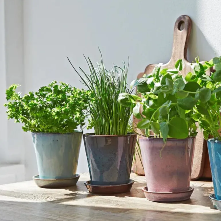 De vakre skulpturelle dyrkingspottene ble opprinnelig lansert på slutten av 1970 -tallet og er nå tilbake i en klassisk, tidløs design i vakre farger. Dyrkingskrukkene er produsert i sterkt brent terrakotta med reaktive glasurer, noe som gir et unikt og spesielt uttrykk i hvert eneste produkt. Med krukkene skapes en innendørs urtehage for timian, basilikum, rosmarin eller andre urter.
