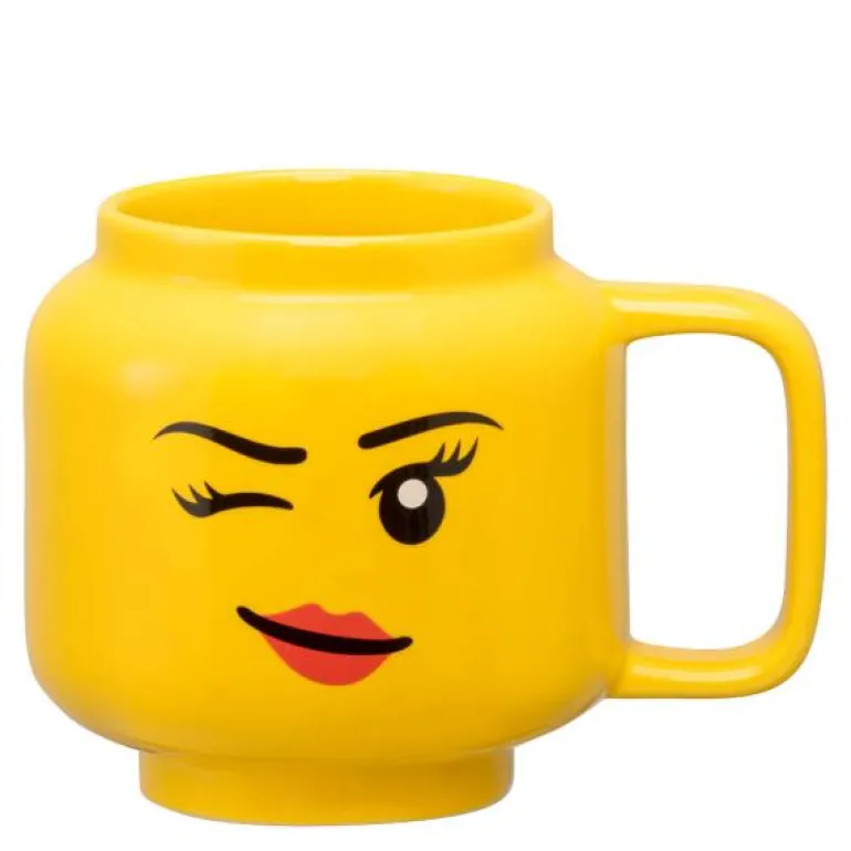 Gult krus 25,5 cl med blinkefjes jente fra LEGO®. Utvid LEGO eventyret og nyt dine favorittdrikker fra denne morsomme og lekne koppen i kermaikk. En unikt utformet kopp, formet som det ikoniske LEGO Minifigur-hodet.