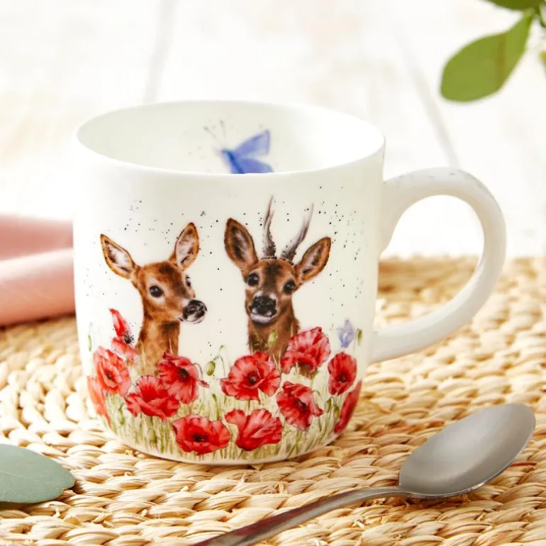 Deer to Me er en sjarmerende kopp fra Wrendale Designs, dekorert med Hannah Dales detaljerte dyreillustrasjoner. Motivet viser et vakkert hjortepar hvilende i et blomsterfelt, mens baksiden byr på en leken scene med en liten hjort og en sommerfugl – inspirert av det frodige, britiske landskapet.