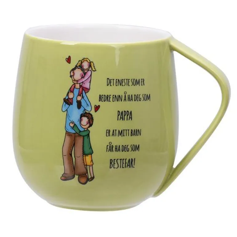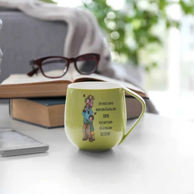 Kruset måler diameter 9 cm høyde 10 cm og rommer 400 ml. Materialet er porselen. Rengjøres i oppvaskmaskin. Hvert krus kommer i en flott gavekartong.