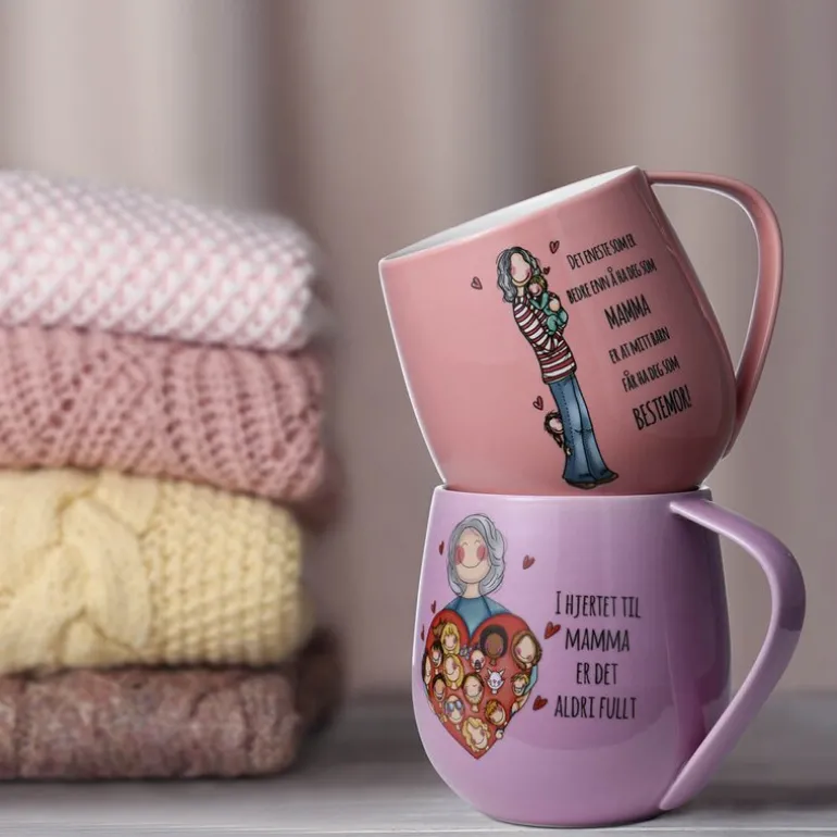 Kruset måler diameter 9 cm høyde 10 cm og rommer 400 ml. Materialet er porselen. Rengjøres i oppvaskmaskin. Hvert krus kommer i en flott gavekartong.