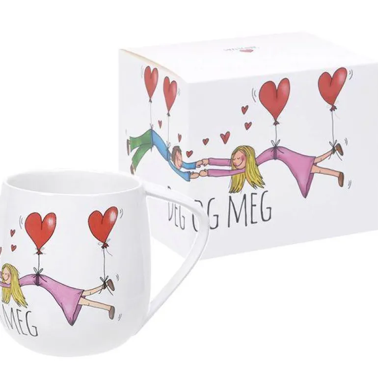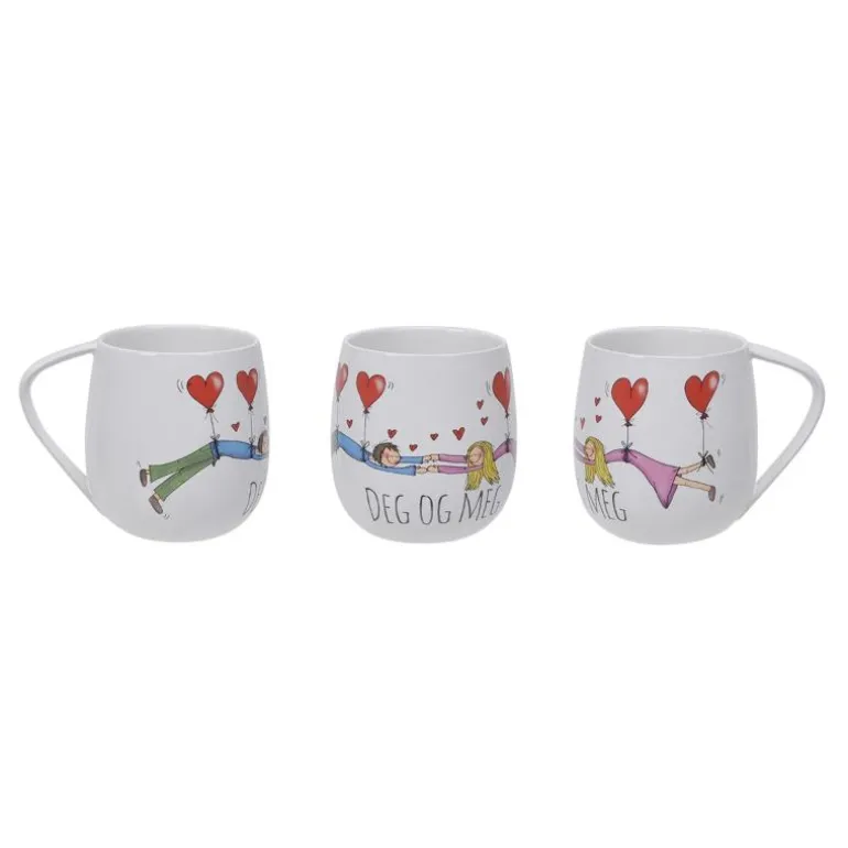 Kruset måler diameter 9 cm høyde 10 cm og rommer 400 ml. Materialet er porselen. Rengjøres i oppvaskmaskin. Hvert krus kommer i en flott gavekartong.