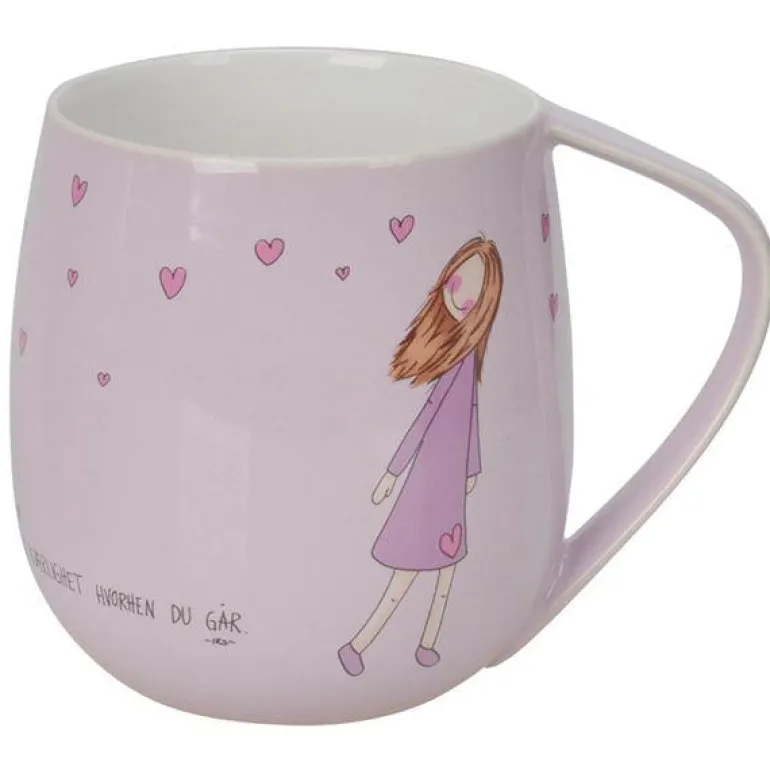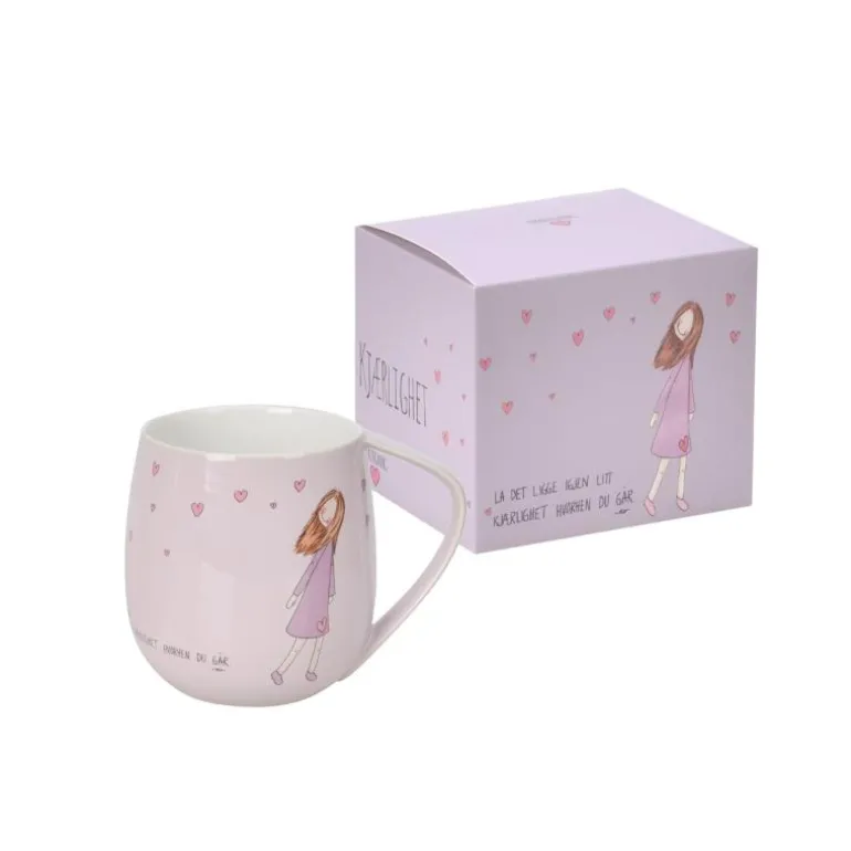 Kruset måler diameter 9 cm høyde 10 cm og rommer 400 ml. Materialet er porselen. Rengjøres i oppvaskmaskin. Hvert krus kommer i en flott gavekartong.
