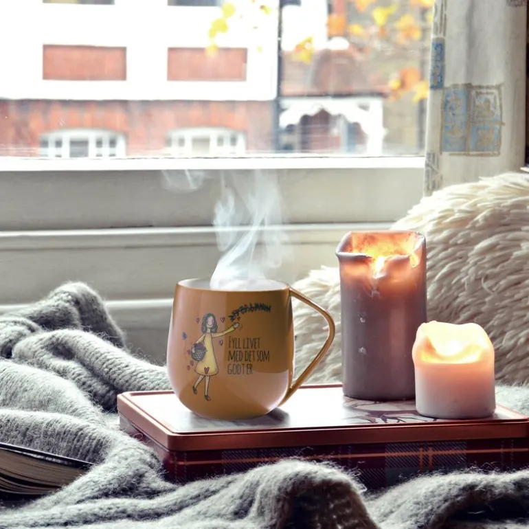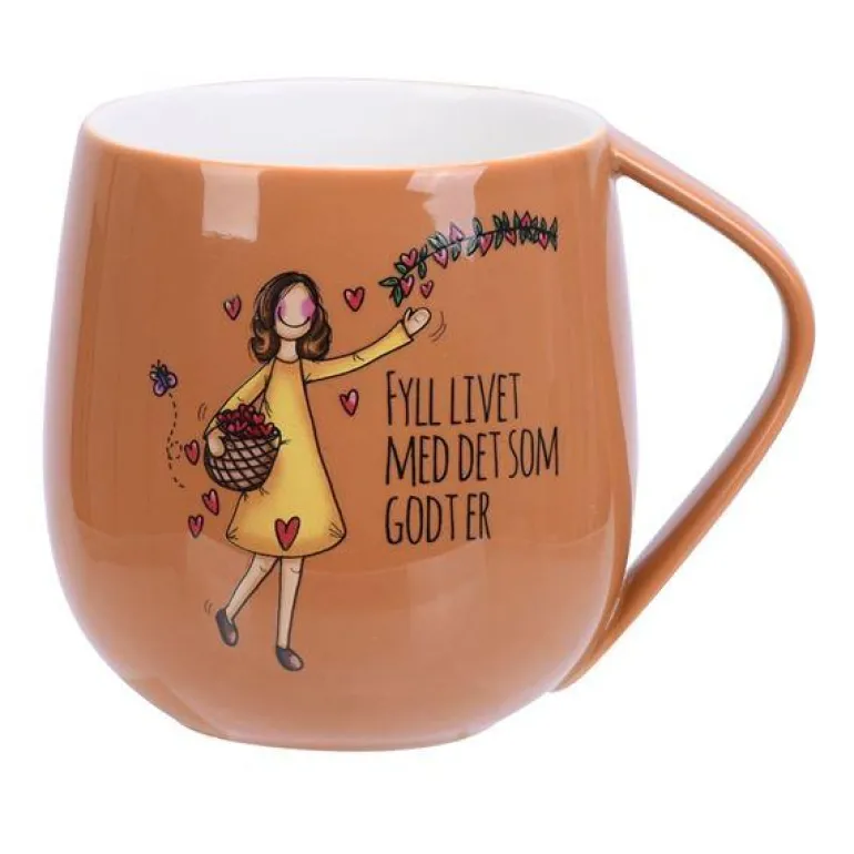 Kruset måler diameter 9 cm høyde 10 cm og rommer 400 ml. Materialet er porselen. Rengjøres i oppvaskmaskin. Hvert krus kommer i en flott gavekartong.