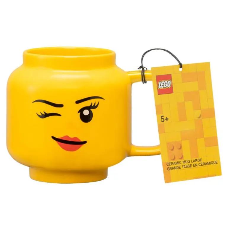 Gult krus 55 cl med blinkefjes jente fra LEGO®. Utvid LEGO eventyret og nyt dine favorittdrikker fra denne morsomme og lekne koppen i kermaikk. En unikt utformet kopp, formet som det ikoniske LEGO Minifigur-hodet.