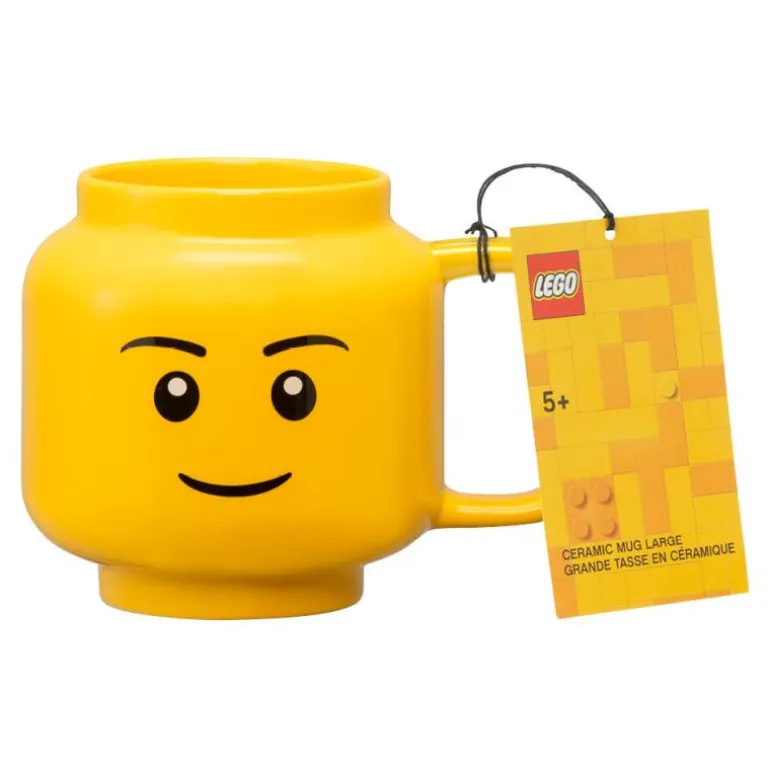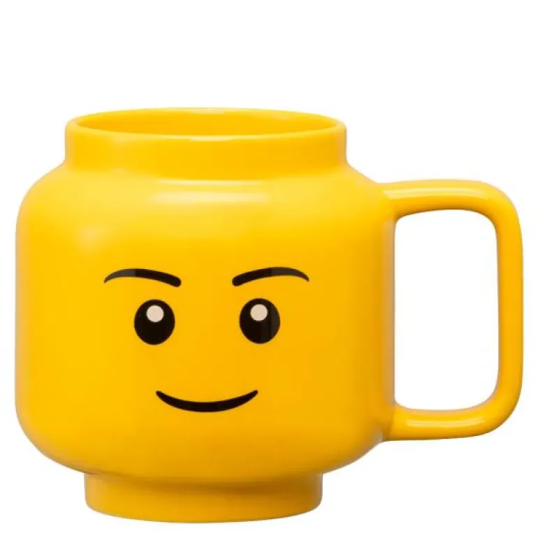 Gult krus 55 cl med nøytralt fjes fra LEGO®. Utvid LEGO eventyret og nyt dine favorittdrikker fra denne morsomme og lekne koppen i kermaikk. En unikt utformet kopp, formet som det ikoniske LEGO Minifigur-hodet.