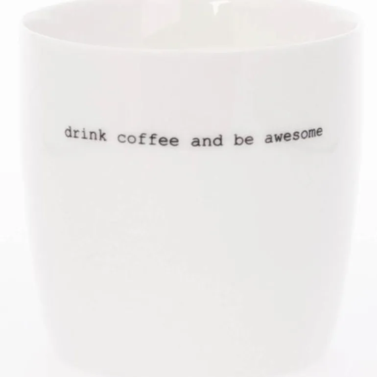 Hvitt krus fra Sögne Home, med teksten drink coffee and be awesome i svart. Det håndlagde sögne kruset så dagens lys i 2013, og har med sitt tynne porselen og gode hank, blitt manges favoritt! Kolleksjonen av krus kommer i ulike farger, størrelser og utvalgte populære tekster. Sögne sine krus er blitt folkekjære favoritter som de er stolte av! Krusene er med sitt tidløse design laget for å vare i generasjoner og fylle din dag med et treffende hverdags budskap. Krusene er hyggelig å bruke der du er med familie, venner, kollegaer og som gave for ulike anledninger. Krus med varme verdier.