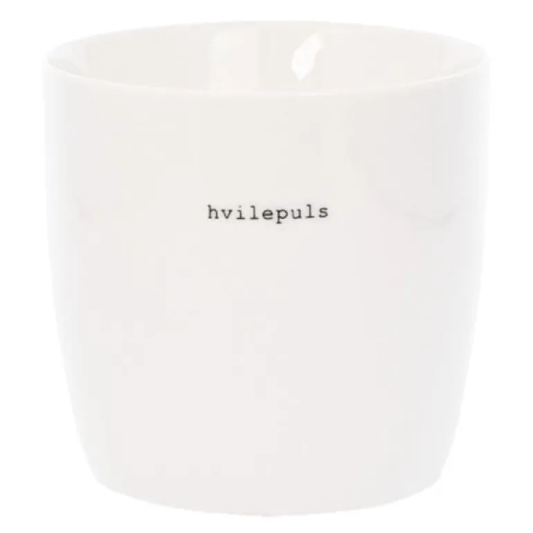 Hvitt krus fra Sögne Home, med teksten hvilepuls i svart. Det håndlagde sögne kruset så dagens lys i 2013, og har med sitt tynne porselen og gode hank, blitt manges favoritt! Kolleksjonen av krus kommer i ulike farger, størrelser og utvalgte populære tekster. Sögne sine krus er blitt folkekjære favoritter som de er stolte av! Krusene er med sitt tidløse design laget for å vare i generasjoner og fylle din dag med et treffende hverdags budskap. Krusene er hyggelig å bruke der du er med familie, venner, kollegaer og som gave for ulike anledninger. Krus med varme verdier.