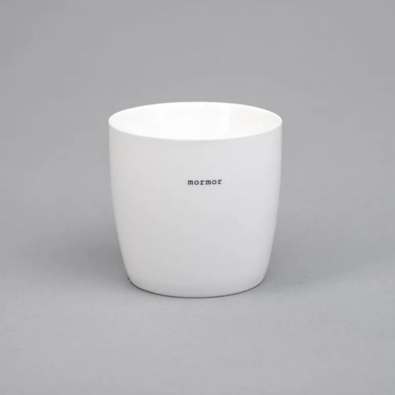 Hvitt krus fra Sögne Home, med teksten mormor i svart. Det håndlagde sögne kruset så dagens lys i 2013, og har med sitt tynne porselen og gode hank, blitt manges favoritt! Kolleksjonen av krus kommer i ulike farger, størrelser og utvalgte populære tekster. Sögne sine krus er blitt folkekjære favoritter som de er stolte av! Krusene er med sitt tidløse design laget for å vare i generasjoner og fylle din dag med et treffende hverdags budskap. Krusene er hyggelig å bruke der du er med familie, venner, kollegaer og som gave for ulike anledninger. Krus med varme verdier.