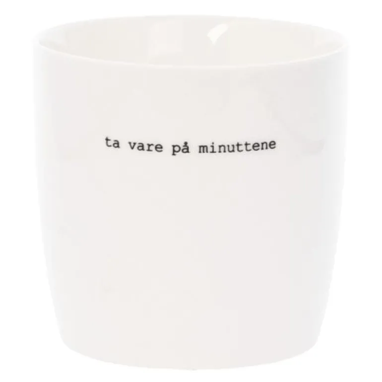 Hvitt krus fra Sögne Home, med teksten ta vare på minuttene i svart. Det håndlagde sögne kruset så dagens lys i 2013, og har med sitt tynne porselen og gode hank, blitt manges favoritt! Kolleksjonen av krus kommer i ulike farger, størrelser og utvalgte populære tekster. Sögne sine krus er blitt folkekjære favoritter som de er stolte av! Krusene er med sitt tidløse design laget for å vare i generasjoner og fylle din dag med et treffende hverdags budskap. Krusene er hyggelig å bruke der du er med familie, venner, kollegaer og som gave for ulike anledninger. Krus med varme verdier.