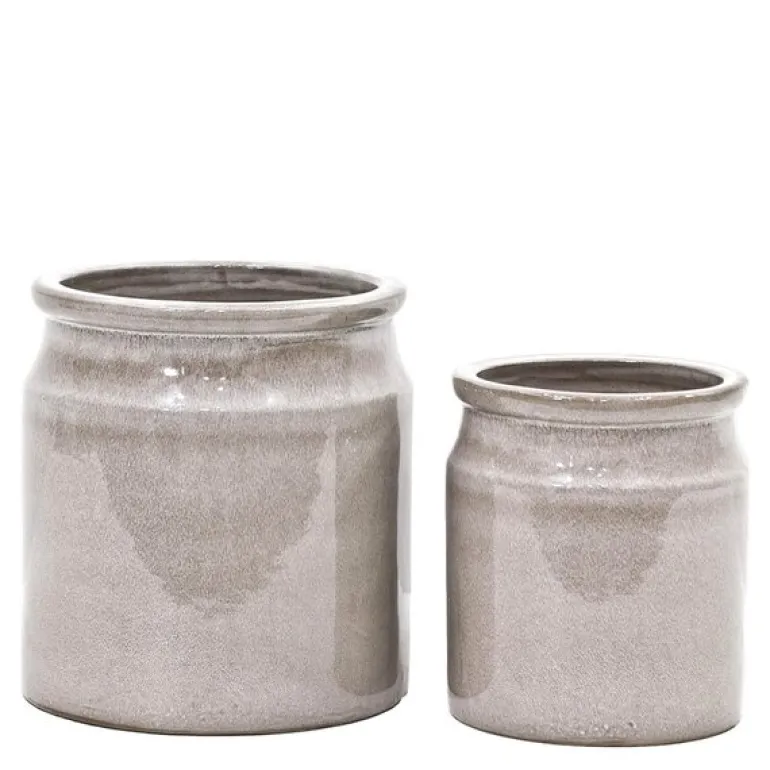 KrusXL blomsterkrukke 17/22 cm 2 stk grå fra GUS Design gir hagen eller terrassen et klassisk og tidløst preg. Settet består av to keramikkrukker, med en elegant grå farge og blank glassur som tilfører et sofistikert uttrykk. Den nostalgiske formen kombinerer stil og funksjonalitet, perfekt for å fremheve dine planter.