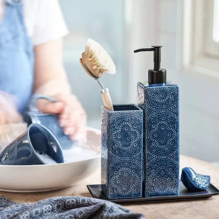 Med Kub Orient oppvaskbørsteholder fra Cultdesign blir det enkelt å holde orden ved vasken. Den midnattsblå fargen gir en elegant kontrast som kan kombineres med andre elementer i Kub-serien for et helhetlig uttrykk.