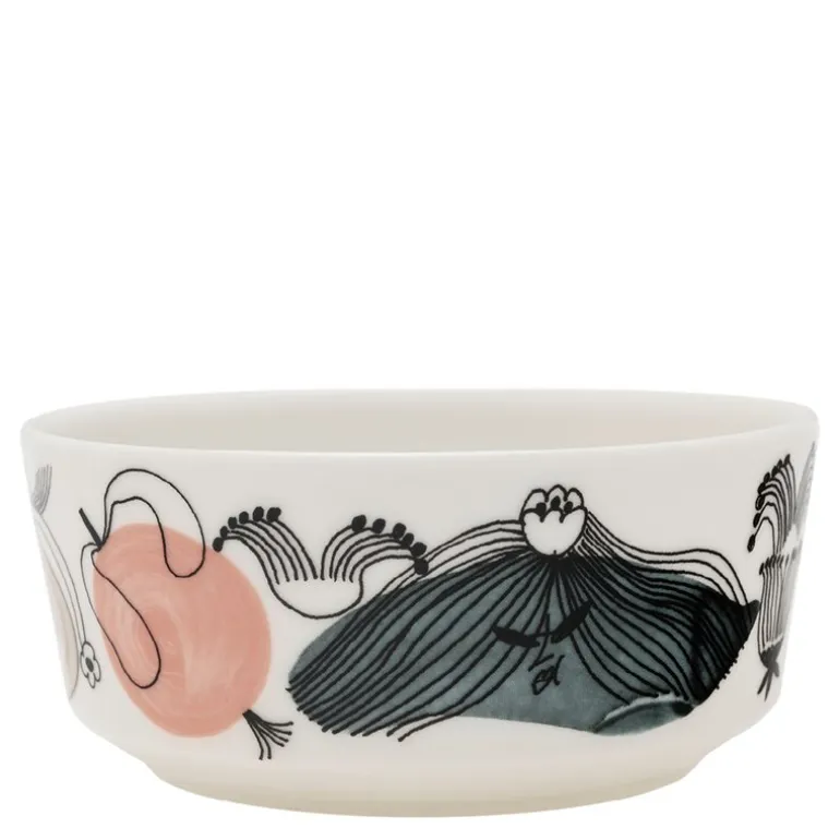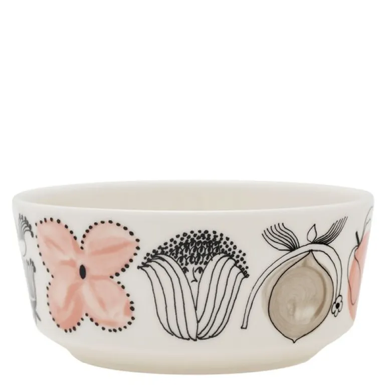 Kukkamaa skål 13 cm fra Arabia kombinerer kunstnerisk design med praktisk funksjonalitet. Armi Tevas håndtegnede mønstre og fine penselstrøk gjør hver bolle til en liten hage på bordet. Med sitt allsidige design er bollen ideell til frokost, supper, desserter eller enda mindre porsjoner, og dens kompakte størrelse på 13 cm gjør den enkel å bruke og kombinere.