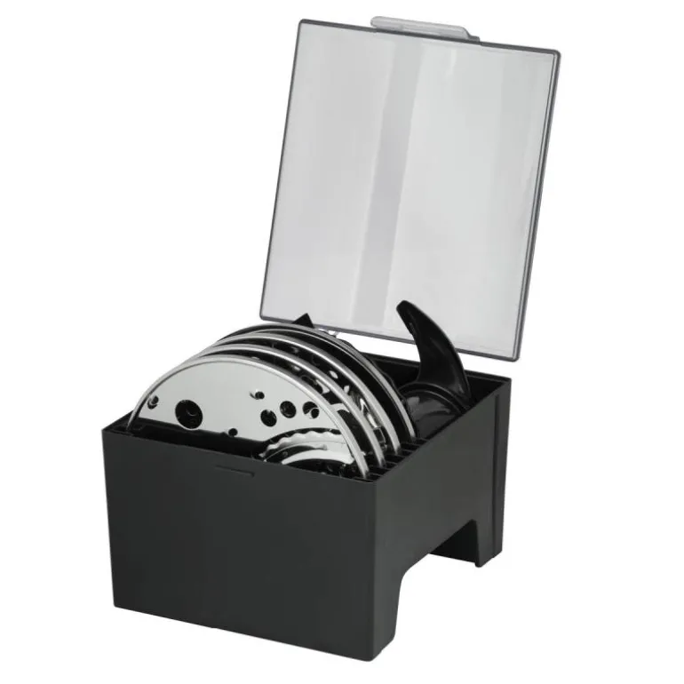 - Tåler oppvaskmaskin: Stopper, lokk, kniv i rustfritt stål, skjæreskiver, emulgeringsskive, elteblad