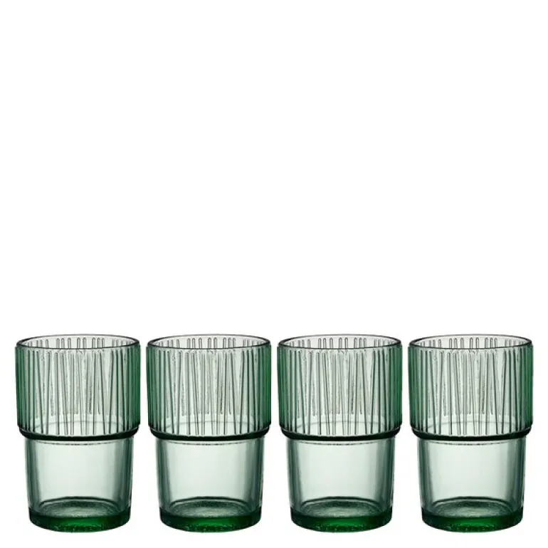 Kusintha kaffeglass 38 cl 4 stk grønn, fra Bitz. Disse fire stablebare kaffeglassene, med en kapasitet på 38 cl, er laget av gjennomfarget glass og er perfekte for både kald og varm drikke.