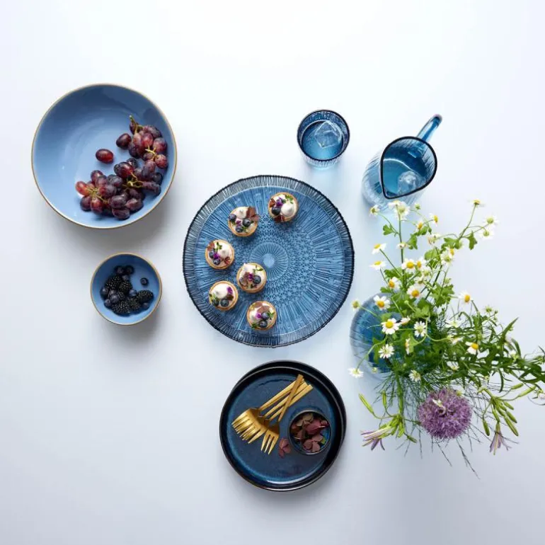 Nyt synet av den fine kannen i riflet, gjennomfarget glass når du heller opp vann eller juice. Kannen fås i fargene grønn, rav, rosa og blå, og når du kjøper fra Kusintha-kolleksjonen, støtter du samtidig barn i nød i verdens fattigste områder.
