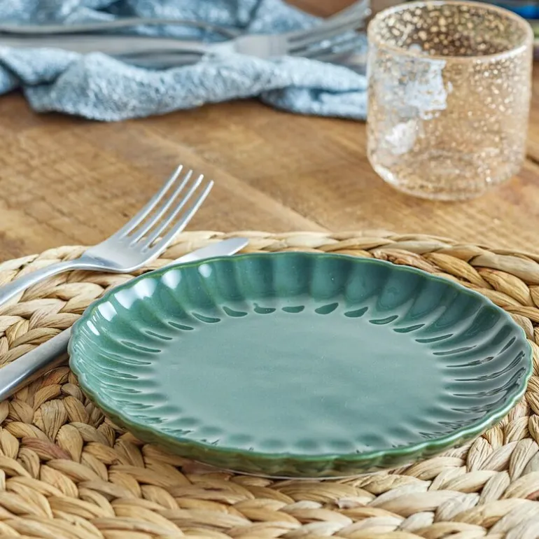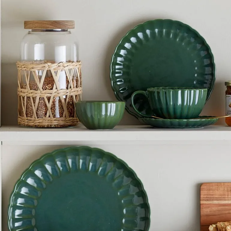 Latina tallerken 20 cm i mørkegrønn fra Bloomingville er laget av holdbart steintøy og har en vakker glasur som gir et tidløst og elegant uttrykk. Tallerkenens naturlige variasjoner i glasuren gjør hver enkelt unik, noe som tilfører en personlig touch til borddekningen.