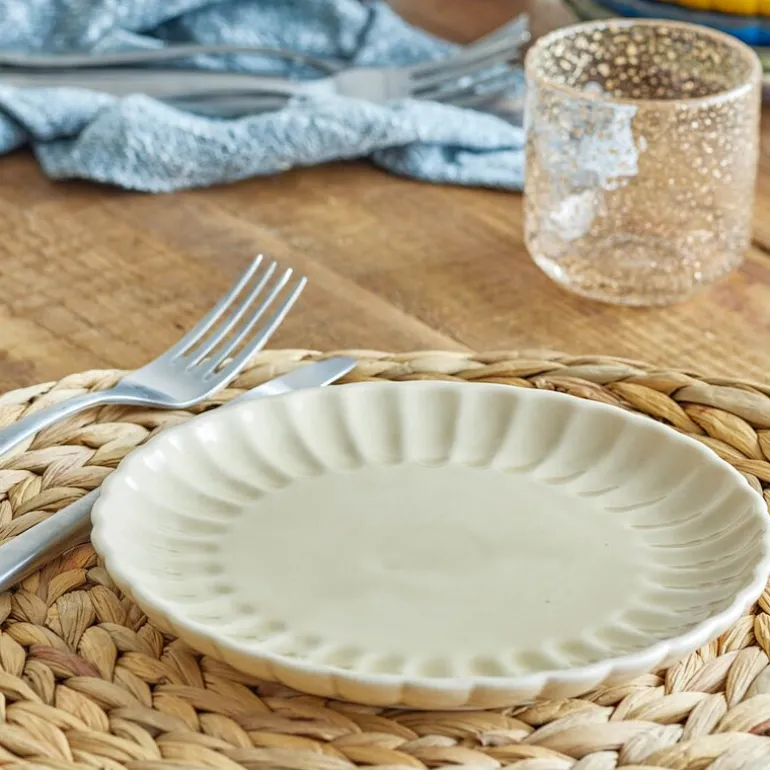 Det diskrete, strukturerte mønsteret langs kanten gir et dekorativt preg som passer både til hverdagsmåltider og mer formelle anledninger. Tallerkenen tåler oppvaskmaskin og er enkel å vedlikeholde.