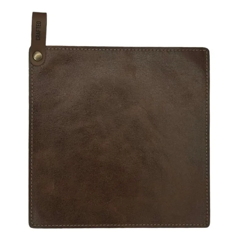 Siden 2001 har Crafted designet og produsert skinnvarer i Nederland, og i 2015 lanserte de sitt eget merke, Crafted Leather & Lifestyle. Deres fokus på å bruke førsteklasses kuskinn fra nederlandske garverier sikrer produkter som kombinerer estetikk med funksjonalitet. Grytekluten er en del av et bredt sortiment som inkluderer bordutstyr, interiør og livsstilstilbehør – alt håndlaget med omtanke og kjærlighet for materialet.