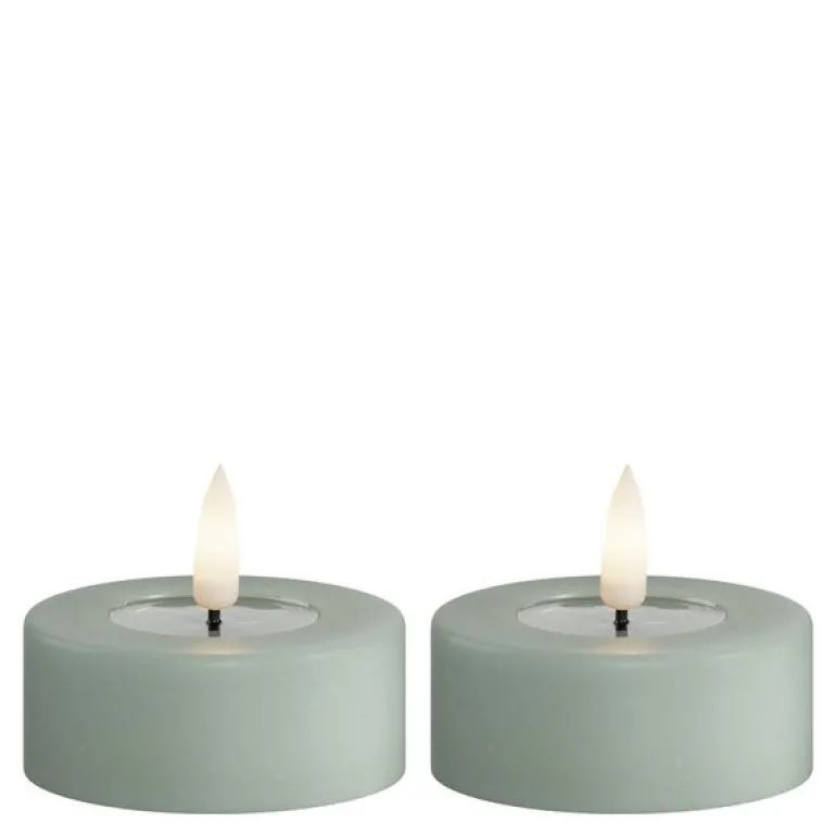 LED jumbo telys 6,1 x 4,5 cm i salviegrønn fra Deluxe Homeart gir hjemmet et stilfullt løft. Den moderne grønntonen, kombinert med voksbelegg og realistisk 3D-flamme, skaper en varm og naturtro atmosfære – helt uten brannfare.