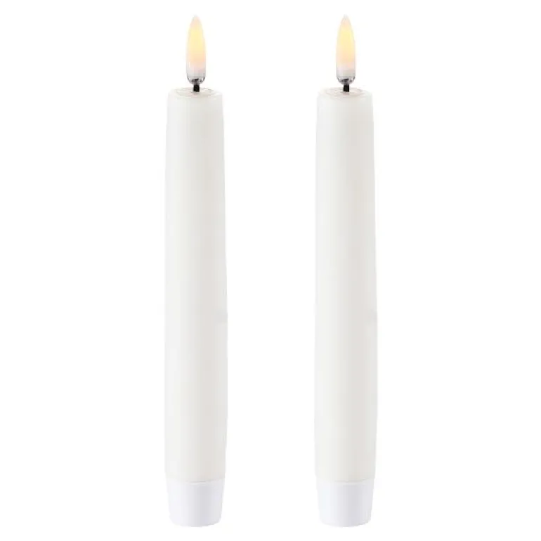 Med den patenterte 3D flammen i Uyuni lysene blir flammen naturtro og unik. Kubbelysene har LED lys og er laget i parafinvoks. Du får samme stemning som med et ekte stearinlys, men uten noen av de skadelige stoffene du kan få ved å bruke vanlig stearinlys.Ved å kjøpe fjernkontrollen i serien får du enda flere muligheter, med den kan du stille inn ulike lysstyrker, skru av og på lysene, samt styre timingen. Gavepakke med 2 stk lysLysene går på batteri 2 x AAA(ikke inkludert).