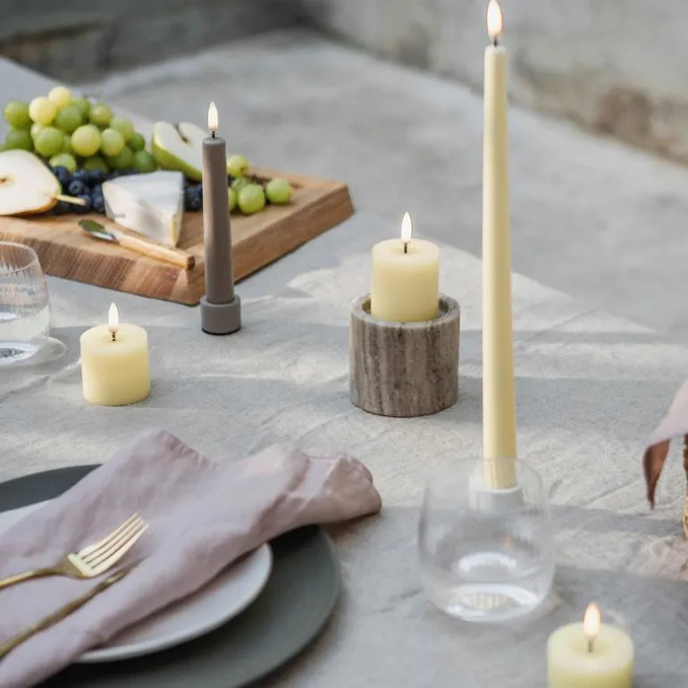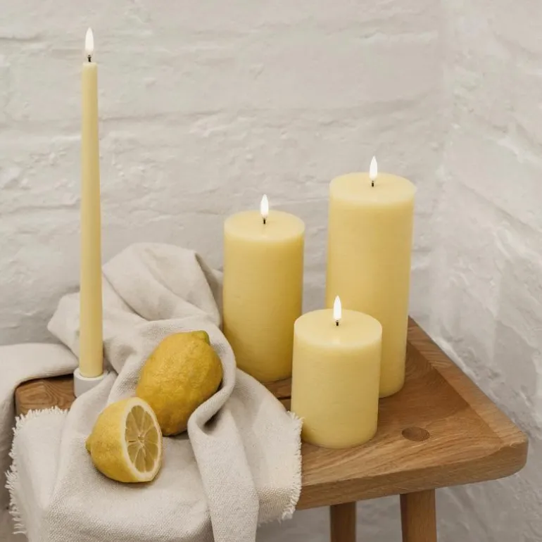 Det anbefales å fjerne batterier fra produkter som ikke er i bruk, da produktet kan bli skadet hvis batteriene lekker. Hvis et batteri viser tegn på lekkasje, skal det kastes som elektronisk avfall. Uyuni lighting lager kunstige stearinlysene med LED-flamme og batteri. Som er et trygt alternativ til de levende lysene. Det er også enda bedre for inneklimaet, da de ikke gir sot fra flammen. Lysene er allergivennlige og er trygge for små barn og kjæledyr.