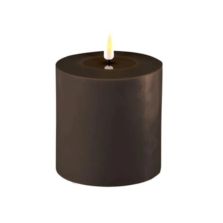 Deluxe Homeart har designet Real Flame – noe som gir en en naturtro 3D-flamme. Kubbelysene er laget av 100% ekte stearin med en harpiks ring på toppen som får det til å se ut som om det er flytende voks øverst på lyset og som flammen speiler seg i – veldig vakre og naturtro. Tenk på inneklima og miljø! Om du vil unngå giftige partikler og sot fra vanlige stearin lys, så er disse LED-lysene et flott alternativ. Lang batteritid på 400+ timer Kan slås på og av med fjernkontroll (valgfritt) Timerfunksjon – styres av fjernkontroll Patentert design 12 forskjellige farger Ikke vanntett Må ikke stå i direkte sollys.