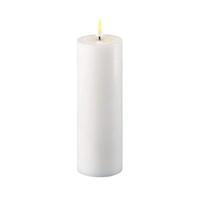 Deluxe Homeart har designet Real Flame – noe som gir en en naturtro 3D-flamme. Kubbelysene er laget av 100% ekte stearin med en harpiks ring på toppen som får det til å se ut som om det er flytende voks øverst på lyset og som flammen speiler seg i – veldig vakre og naturtro. Tenk på inneklima og miljø! Om du vil unngå giftige partikler og sot fra vanlige stearin lys, så er disse LED-lysene et flott alternativ. Lang batteritid på 400+ timer Kan slås på og av med fjernkontroll (valgfritt) Timerfunksjon – styres av fjernkontroll Patentert design 12 forskjellige farger Ikke vanntett Må ikke stå i direkte sollys.