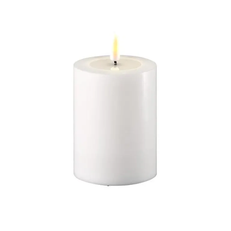 Deluxe Homeart har designet Real Flame – noe som gir en en naturtro 3D-flamme. Kubbelysene er laget av 100% ekte stearin med en harpiks ring på toppen som får det til å se ut som om det er flytende voks øverst på lyset og som flammen speiler seg i – veldig vakre og naturtro. Tenk på inneklima og miljø! Om du vil unngå giftige partikler og sot fra vanlige stearin lys, så er disse LED-lysene et flott alternativ. Lang batteritid på 400+ timer Kan slås på og av med fjernkontroll (valgfritt) Timerfunksjon – styres av fjernkontroll Patentert design 12 forskjellige farger Ikke vanntett Må ikke stå i direkte sollys.