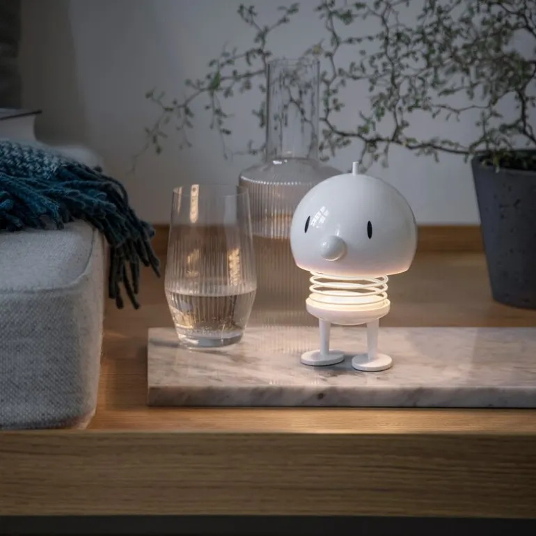 Hoptimist LED lampe i stor størrelse på 15 cm og i fargen hvit er en stilfull og praktisk lampe som gir lys og varme til ethvert rom. Lampen er trådløs og enkel å plassere hvor som helst i hjemmet. Den smarte berøringsfunksjonen gjør det enkelt å slå den av og på, og du kan justere lysstyrken etter behov med et enkelt trykk.
