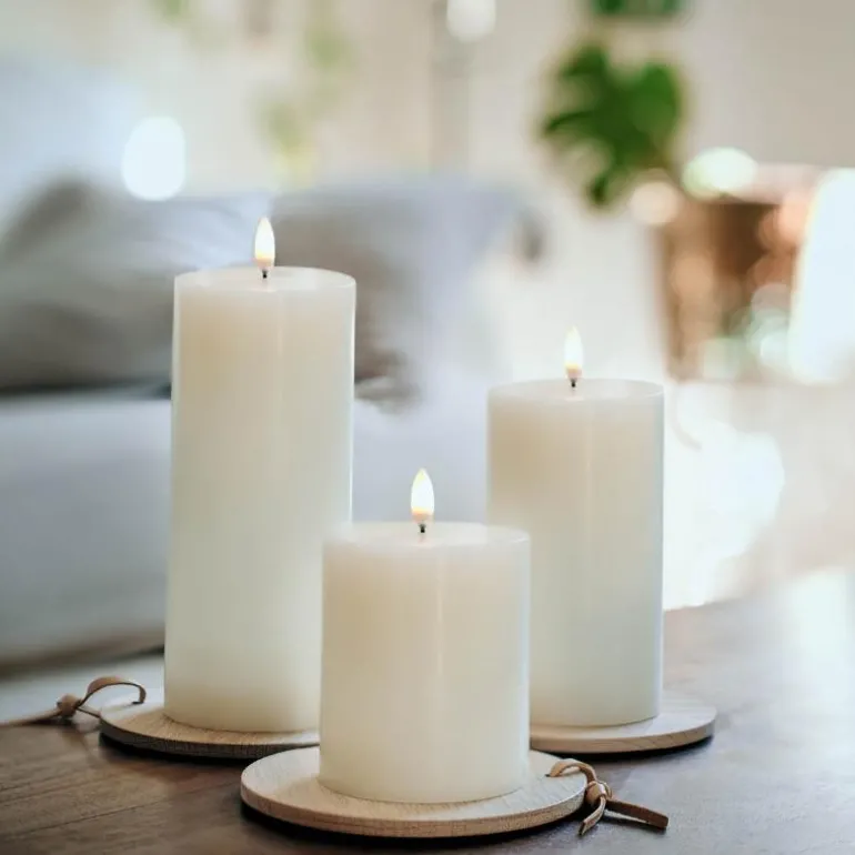 Med den patenterte 3D flammen i Uyuni lysene blir flammen naturtro og unik. Kubbelysene har LED lys og er laget i parafinvoks. Du får samme stemning som med et ekte stearinlys, men uten noen av de skadelige stoffene du kan få ved å bruke vanlig stearinlys.Ved å kjøpe fjernkontrollen i serien får du enda flere muligheter, med den kan du stille inn ulike lysstyrker, skru av og på lysene, samt styre timingen.Lyset går på batteri(2xC), dette er ikke inkludert
