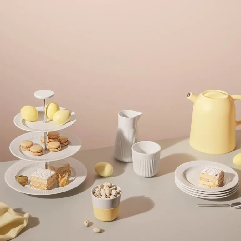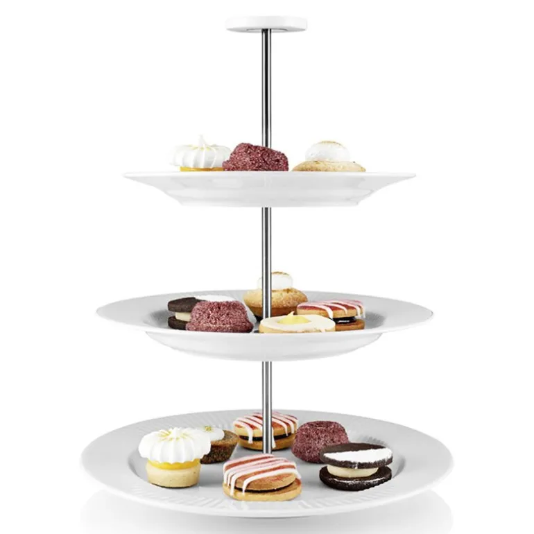 Skap en vakker og elegant servering med Legio Nova etasjefat fra Eva Trio. Denne klassiske oppsatsen i tre etasjer er ideell for alt fra småkaker og sjokolade til frukt og andre delikate anretninger. Med tallerkener i størrelsene 19, 22 og 25 cm får du god plass til å presentere maten på en innbydende måte.
