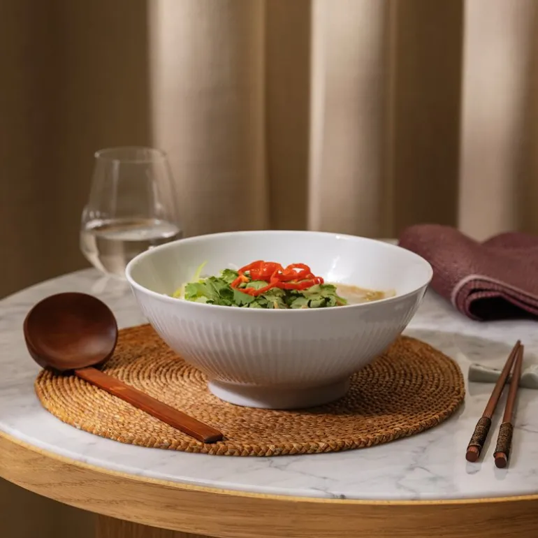 Med sin allsidige design er skålen også perfekt til retter som poke bowls, supper og pasta. Fremstilt i hvitt porselen av høyeste kvalitet og dekorert med de elegante rillene fra Legio Nova-serien, tilfører skålen en tidløs eleganse til bordet.