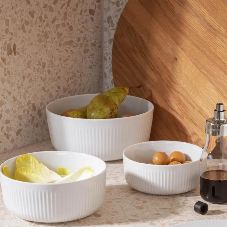 Porselensskål, 2,1 liter hvit, i serien Legio Nova, fra Eva Solo. Legio Nova-skålen er et elegant innslag i enhver anretning. Skålen pynter opp på bordet og er like praktisk i middagsselskap som på kjøkkenbordet til hverdags. Den gode og romslige størrelsen gir mange bruksområder for skålen. Bruk den for eksempel til salat, pasta, grønnsaker eller frukt. Eva Trio grytelokk passer til skålen og kan kjøpes som tilbehør.