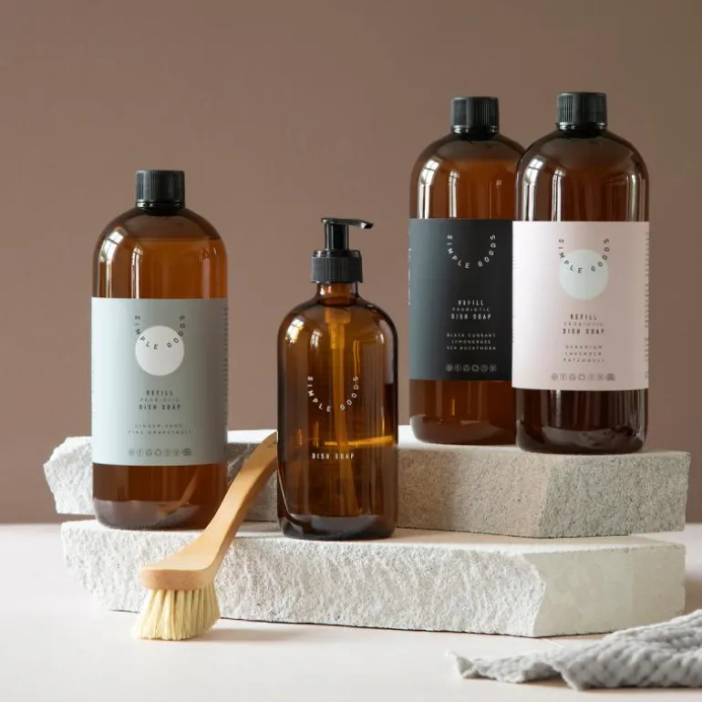 Simple Goods oppvasksåpe er laget av naturlige og økologiske ingredienser og tilsatt naturens gode bakterier – Probiotika. Såpen er øko-sertifisert og etterlater oppvasken din ren, skinnende og velduftende.