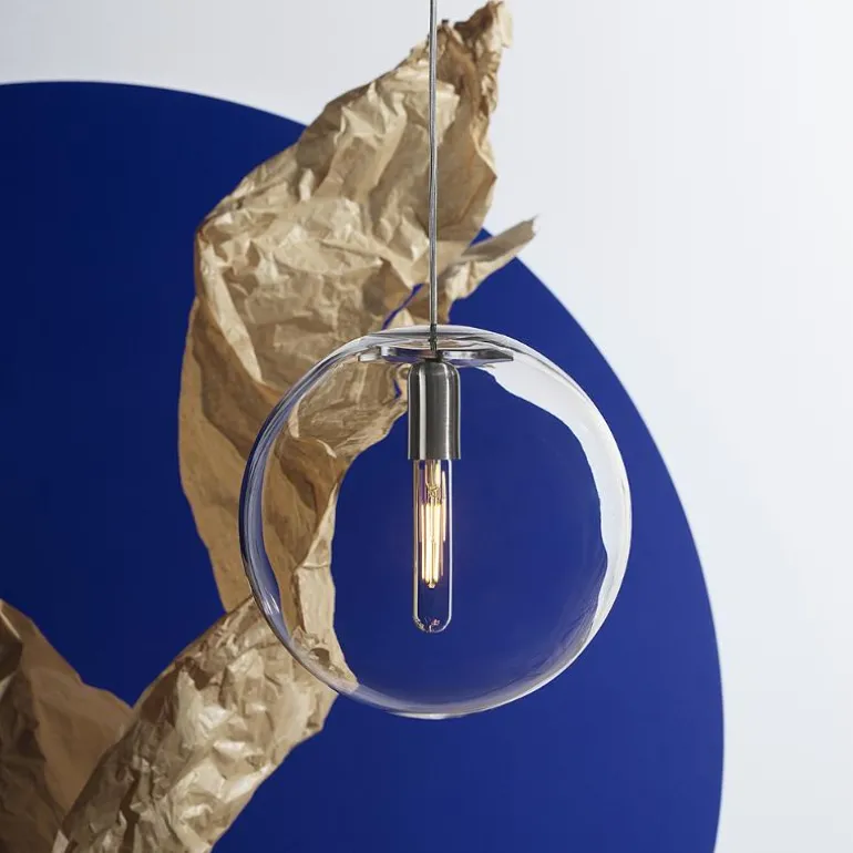 Min utfordring var å bli kvitt det blanke plastlokket som skjuler ledningene og opphengsdelene, og alle overflødige festedeler som faktisk ødelegger inntrykket av alle globe-lamper i glass jeg har sett. Løsningen var å gjøre kappen til en del av selve globen. Den er skjult, men enklere å håndtere enn på andre glober. En erfaren glassblåser i det polske glassverket foreslo å bruke en gammel, glemt maskin som gjør det mulig å polere kanten av globen og dekselet, ned til null toleranse. På både de opake globene og krystallglobene er lokket en integrert og usynlig komponent, og endelig er globe-konseptet perfeksjonert. Lampen er fullført med et kryss i transparent akryl og resten av opphenget og de elektriske ledningene er samlet i én enkelt snor. Hvis du ønsker å forme et rom med lys, må du faktisk velge kompromissløse lyskilder. Det er ikke tilfeldig at min drøm var en globe som var like perfekt som fullmånen, uten skygger – bare rent og behagelig lys, sier Alexander.