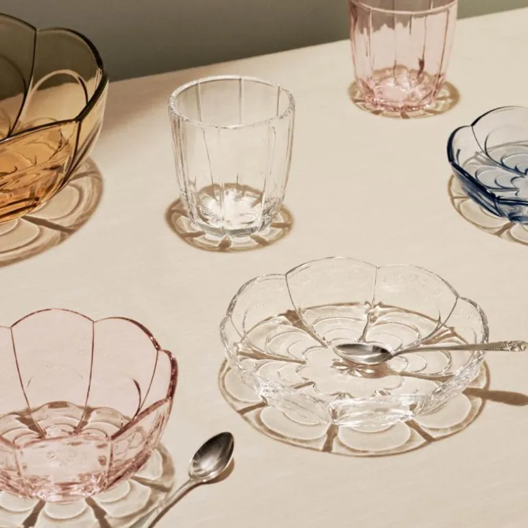 Lily skåler fra Holmegaard i fargen cherry blossom. Holmegaards Lily-serie er inspirert av de forskjellige stadiene i vannliljens blomstring og har det samme lette og poetiske uttrykket som den vakre blomsten selv. Skålen i Cherry Blossom har en diameter på 13 cm og er flott å spise av eller perfekt til å servere sukkerbiter, syltetøy, karameller eller noe helt annet. Blomstermønsteret stikker ut som relieff i det støpte glasset, som er både gjennomsiktig og taktilt. Linjene i designen er enkle, myke og organiske, men på en strømlinjeformet og stilfull måte som skaper en fin balanse mellom et romantisk og moderne uttrykk.
