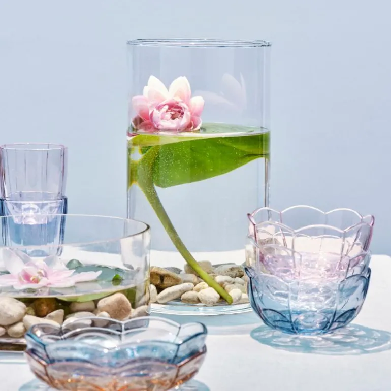 Skålene er enkle å stable og kan også vaskes i oppvaskmaskin, så du kan bruke dem daglig uten å måtte bekymre deg for å vaske dem for hånd. Serien inneholder også en stor serveringsskål, desserttallerken og vannglass ? alle i fire forskjellige farger. Alle delene i Lily-serien er laget av farget glass, slik at fargen holder seg vakker over tid.