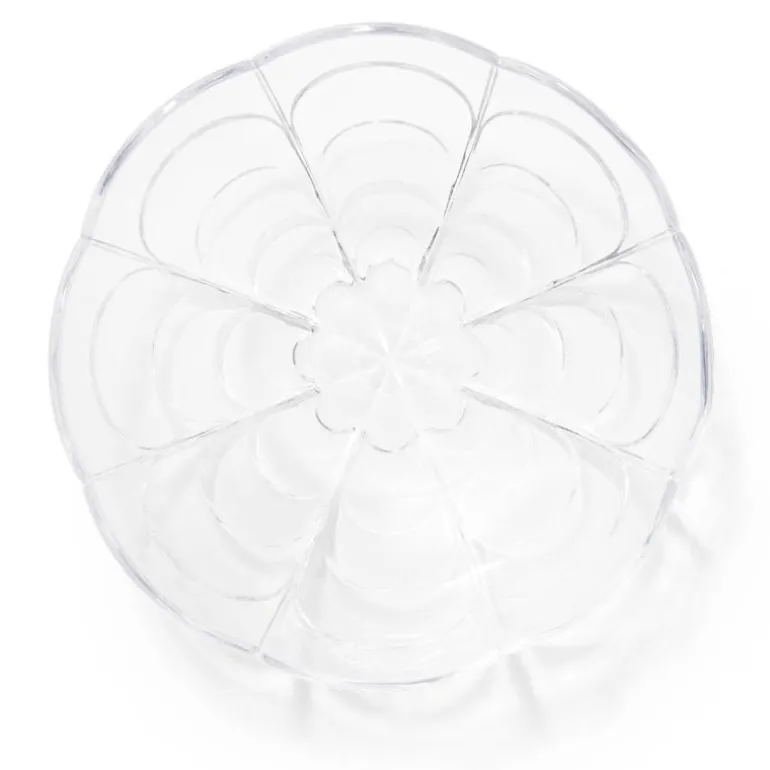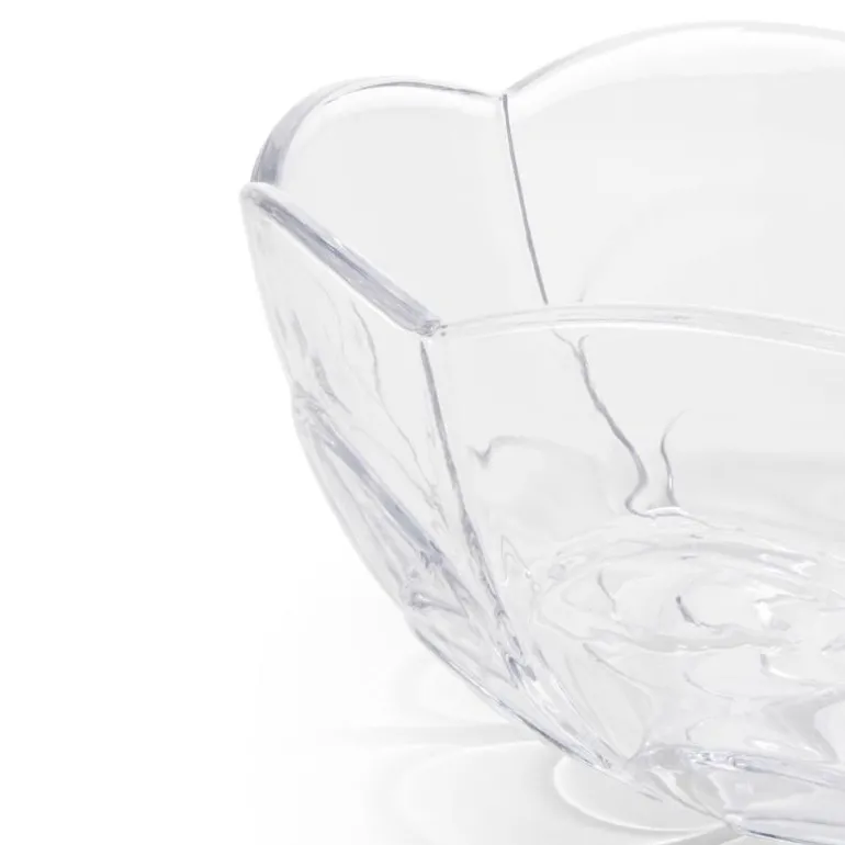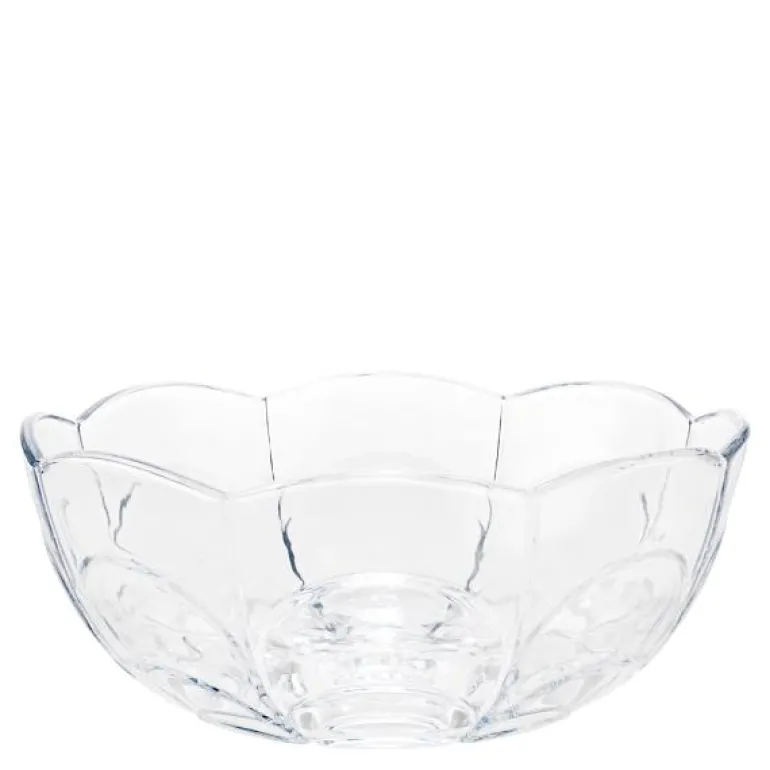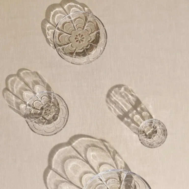 Lily skål fra Holmegaard i klart glass. Holmegaards Lily-serie er inspirert av de forskjellige stadiene i vannliljens blomstring og har det samme lette og poetiske uttrykket som den vakre blomsten selv. Den klare glassskålen har en diameter på 23 cm og er perfekt til en gammeldags dansk eplekake med ristet havre, pisket krem, eplemos og ripsgelé på toppen. Eller til en fruktsalat, grønn salat eller som fruktskål. Blomstermønsteret stikker ut som relieff i det støpte glasset, som er både gjennomsiktig og taktilt. Linjene i designen er enkle, myke og organiske, men på en strømlinjeformet og stilfull måte som skaper en fin balanse mellom et romantisk og moderne uttrykk.