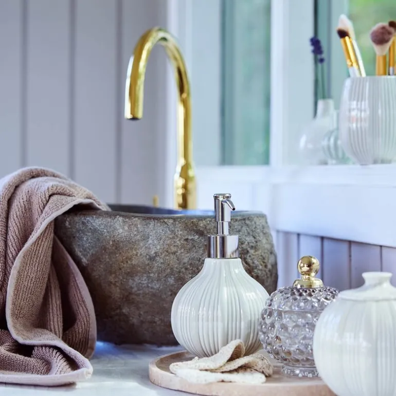 Lily tannbørsteholder i hvit fra Lene Bjerre kombinerer funksjonalitet med sofistikert design og tilfører et eksklusivt preg til baderommet. Denne stilrene holderen måler 8,7 x 10,6 cm og er laget av keramikk, noe som gir den en solid og elegant utførelse. Det delikate stripemønsteret skaper en subtil detalj som løfter helhetsinntrykket, og den passer perfekt inn i både moderne og klassiske baderom.