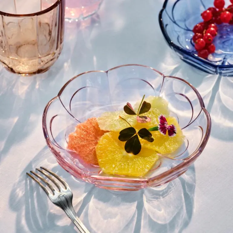 Glassene kan stables og vaskes i oppvaskmaskin, så du kan bruke dem hver dag uten å måtte bekymre deg for å vaske dem opp for hånd. Serien inneholder også en stor serveringsskål, en mindre skål og en desserttallerken – alle i fire forskjellige farger. Alle delene i Lily-serien er laget av farget glass, slik at fargen holder seg vakker over tid.