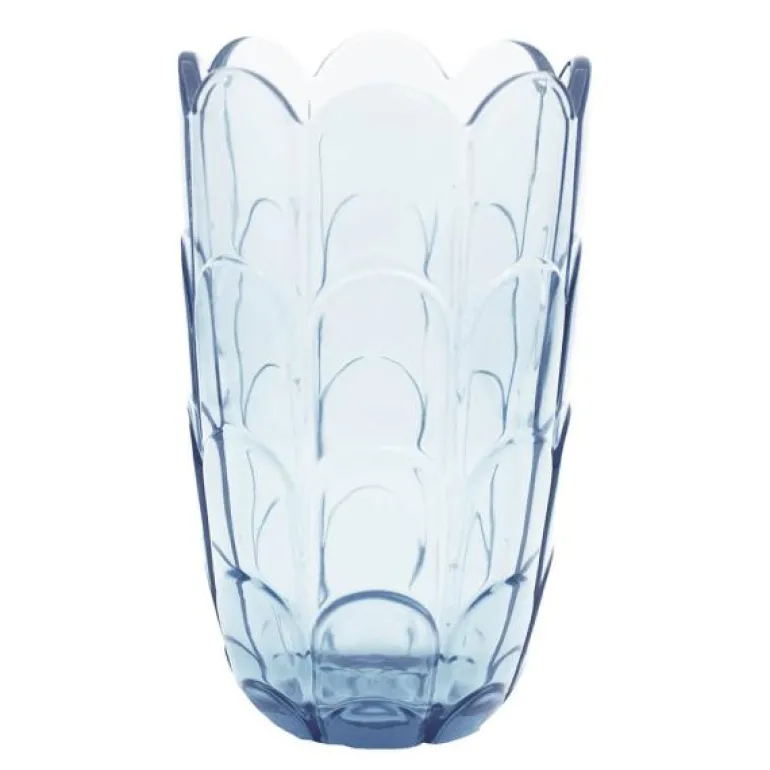 Den fine vasen i fargen blue iris måler 19 cm i høyden, og som en søt liten detalj legger stilkene seg vakkert hele veien rundt i de små fordypningene langs kanten når buketten folder seg ut. På den måten er det rent visuelt kronbladene på vasen som bærer buketten, mens vasen som en vakker forlengelse omfavner buketten og støtter stilkene. Det blåfargede glasset betyr at du ikke bare kan nyte den øverste delen av buketten, men at du får glede av hele blomsterlengden og Lily-seriens vakre refleksjoner i glass når du betrakter buketten.