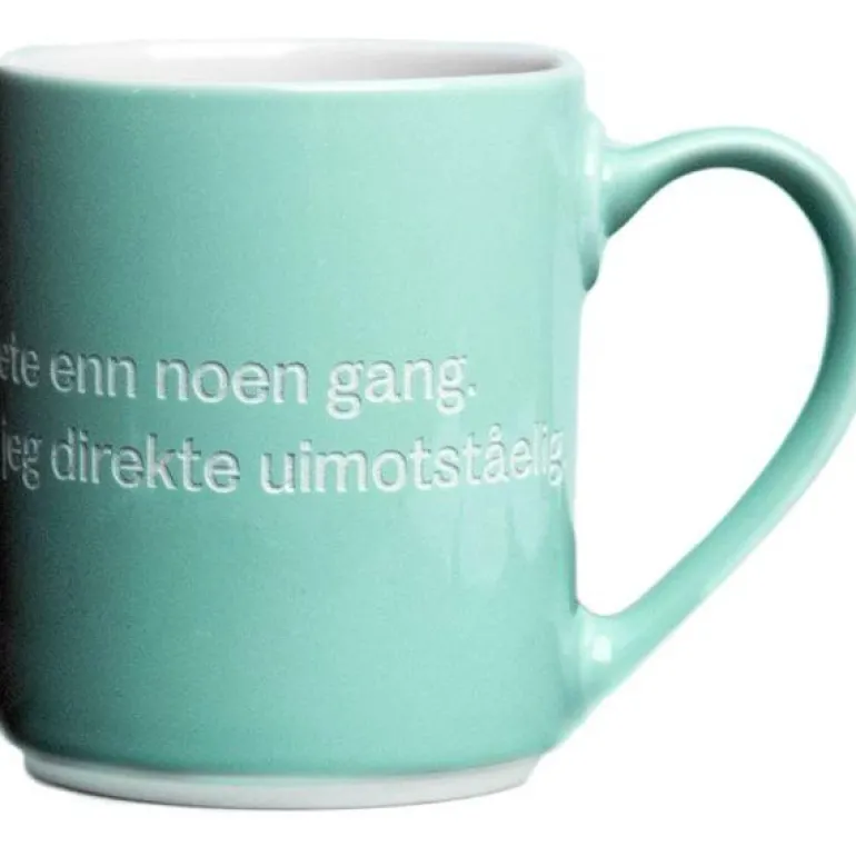På kruset kan vi lese Jeg er vakrere og mer fregnete enn noen gang. Fortsetter det sånn, så blir jeg helt uimotståling. Laget av steintøy, holder det også høy kvalitet, noe som letter både rengjøring og oppvarming. Du kan rengjøre det enkelt i oppvaskmaskinen.