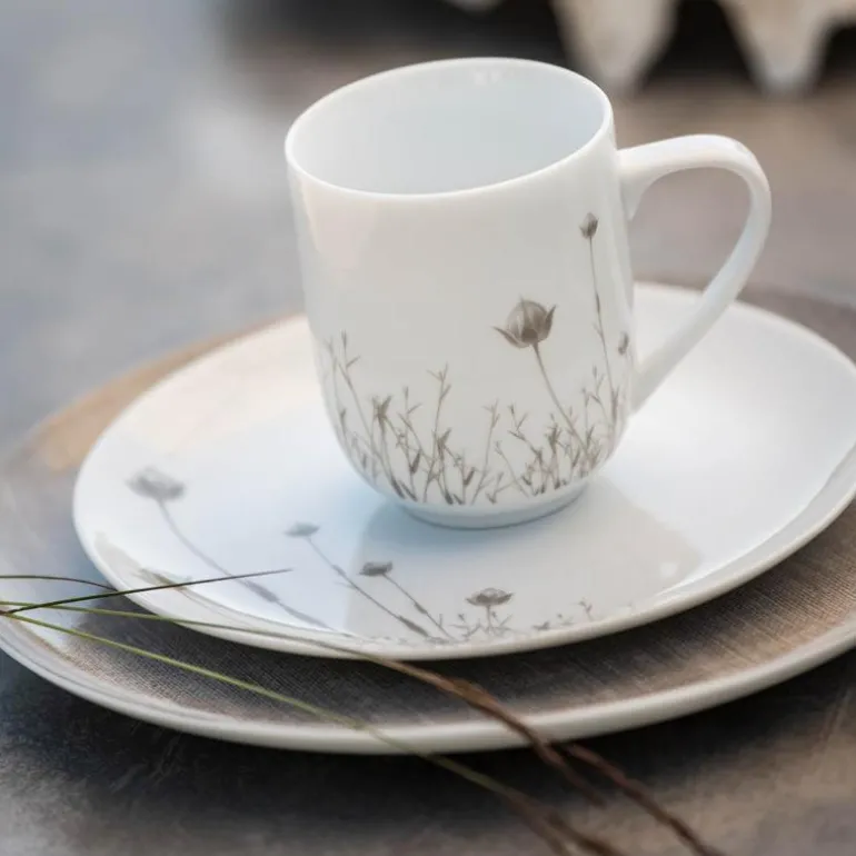 Linen krus 35 cl beige, fra Magnor. LINEN Add-On er delikat og hverdagslig krus og asjett med linblomster i serien LINEN, designet av interiørdesigneren Halvor Bakke. Disse nye porselensdelene er en videreføring av det populære serviset LINEN som er lyst og lekkert med vakker linstruktur. Det nye kruset og den nye asjetten er dekorert med linblomster som passer perfekt sammen med lindekoren. Inspirasjonen har Halvor Bakke hentet fra naturen og de lyse interiørene. Han har alltid vært glad i lin, og lindekoren er overført fra et linstoff i linskapet hjemme på småbruket Trae i Stavern. Linblomstdekoren har han hentet ute i hagen. Resultatet er vakre, tidløse og funksjonelle deler som passer til frokost, lunsj, middag og kveldsmat. De to nye delene kan være et eget servise eller kombineres med de andre delene i serien. LINEN innbyr til hyggelige borddekkinger, koselige samtaler og er like fin en vakker sommerdag ved sjøen, som en høstkveld på fjellet.LINEN består av to krus (linblomst og lin)35 cl, to asjetter (linblomst og lin) 21 cm, flat tallerken 27 cm, dyp tallerken 20 cm, müslibolle 15 cm, bolle 23 cm og bolle/fat stor 31 cm. Designet er gjennomført ned til hver minste detalj med et tidløst designuttrykk, og er laget av beste feltspatporselen med slitesterk glasur, høy hvithetsgrad og styrke. Delene kan brukes både i mikrobølgeovn og i oppvaskmaskin. Alle deler har Halvor Bakkes karakteristiske signatur på undersiden. Enkle, stramme former og klassisk dekor gir en moderne følelse som passer godt til det gode liv. La det bli en del av din hverdag.